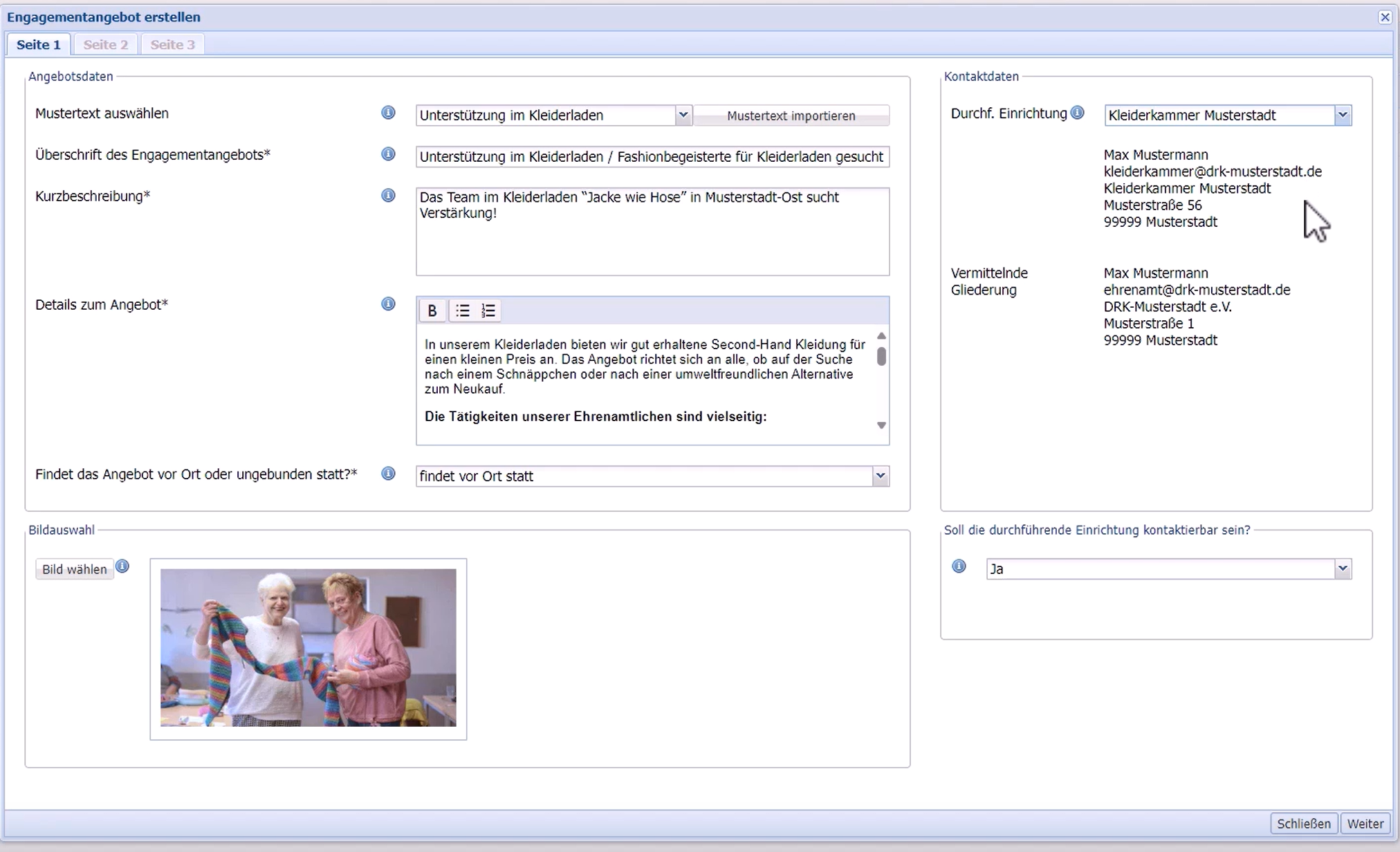 Sobald alle Angaben eingetragen sind, kann das Engagementangebot veröffentlicht werden. Es wird dann auf den entsprechenden Plattformen angezeigt.