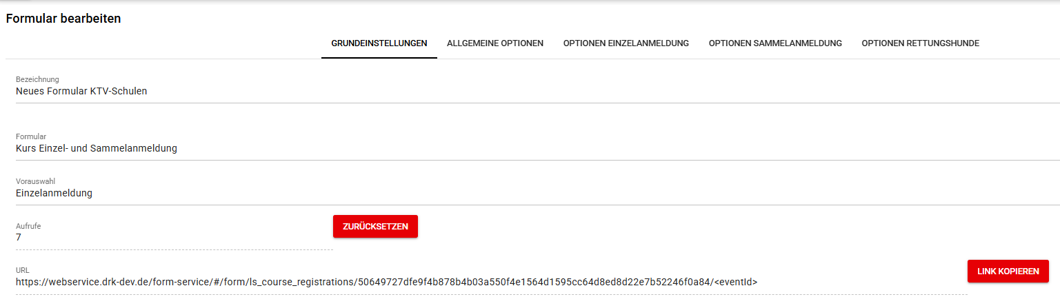 Gehen Sie in den Kursstammdaten → Liste der Links → Onlineanmeldung.
