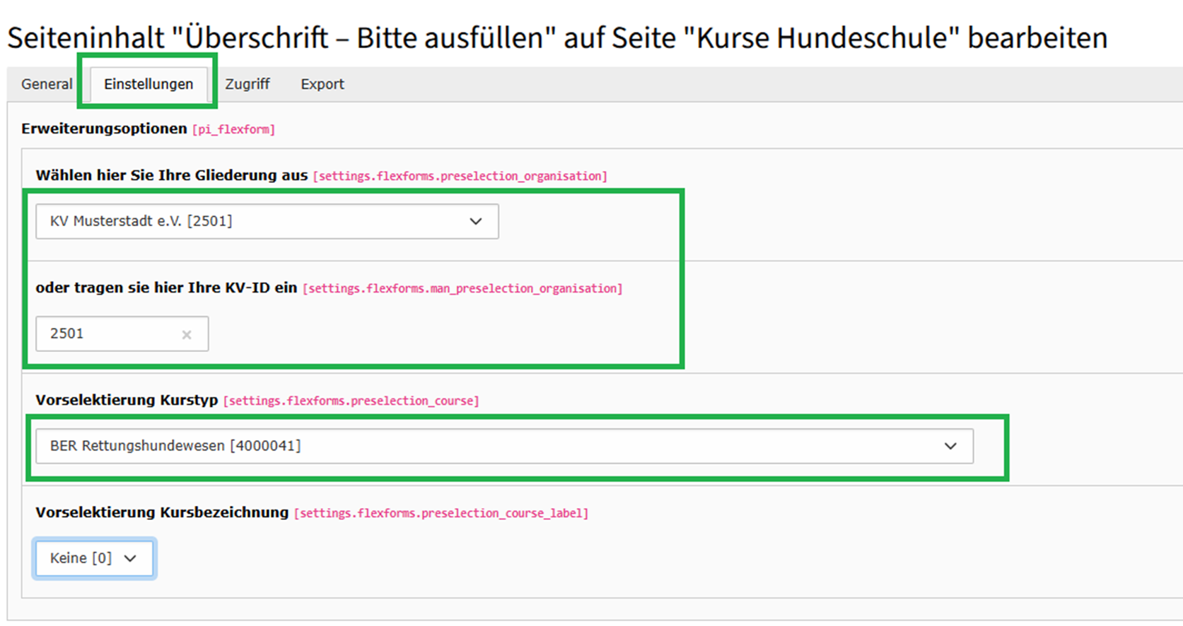 Wählen Sie den Kurstyp, zu dem das Formular gehört.