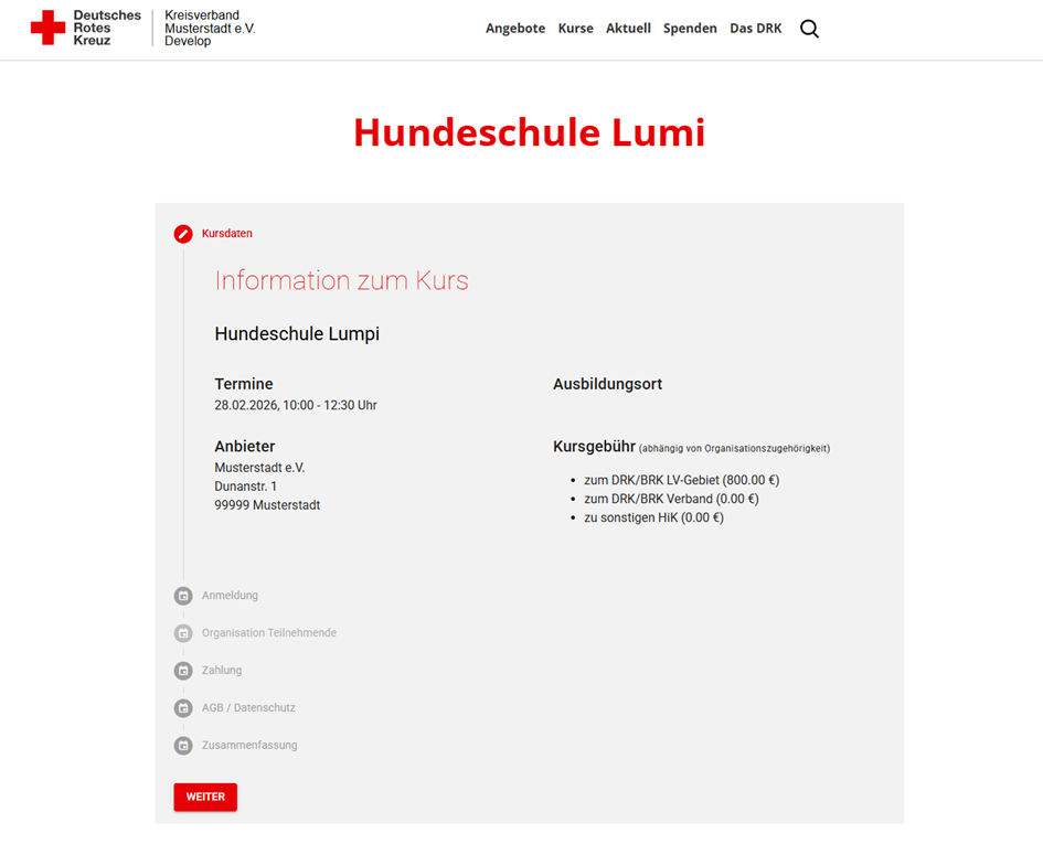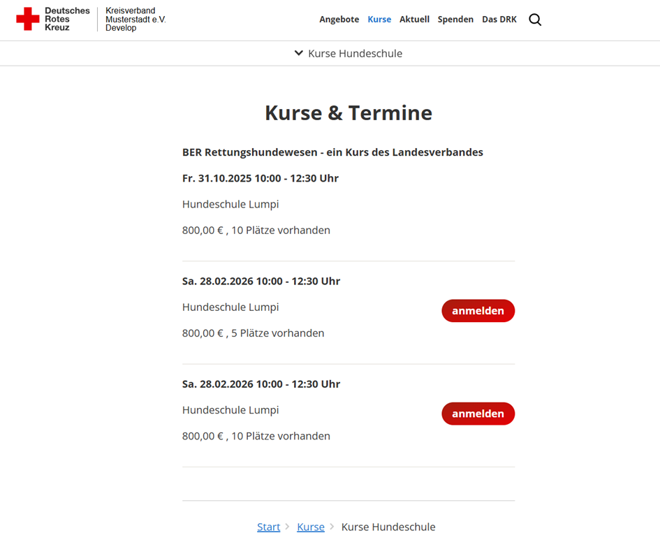 Nach dem Speichern werden die Kurse auf Ihrer Webseite veröffentlicht – Anmeldungen sind ab sofort möglich.