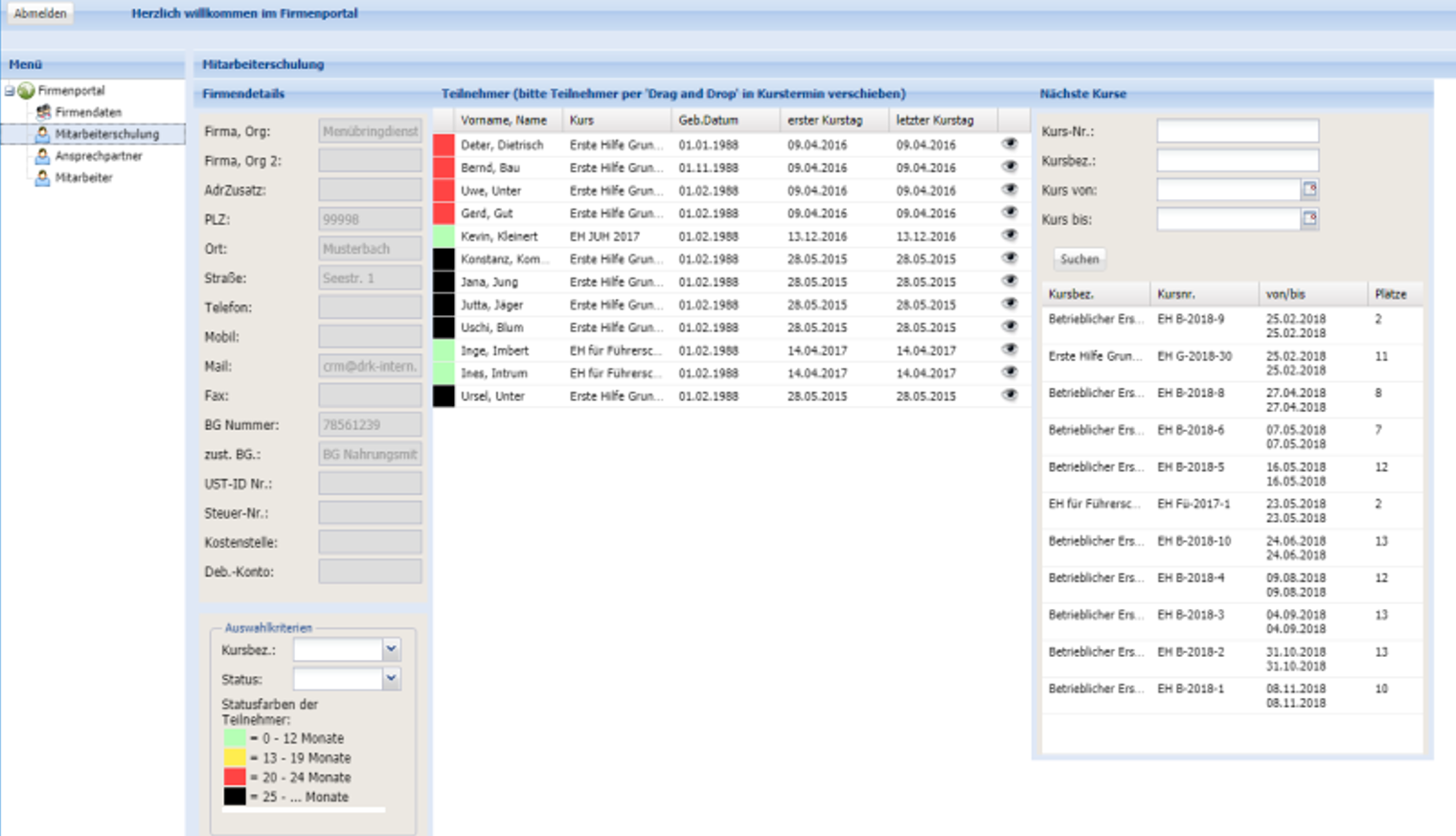 Erstellen Sie die Zugangsdaten für Ihre Firmenkunden, die im Firmenportal selbstständig ihre Mitarbeitenden in die öffentlichen, oder eigens angelegten Inhouse-Termine anmelden möchten.