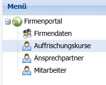 - Auffrischungskurse: Übersicht bekannte Ihres Unternehmens und neue Zuweisung von Kursterminen möglich.