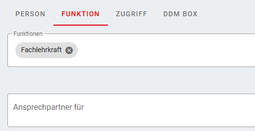 Wechseln Sie in den Reiter "Funktion" und ergänzen die Funktion(en) des Mitarbeitenden.