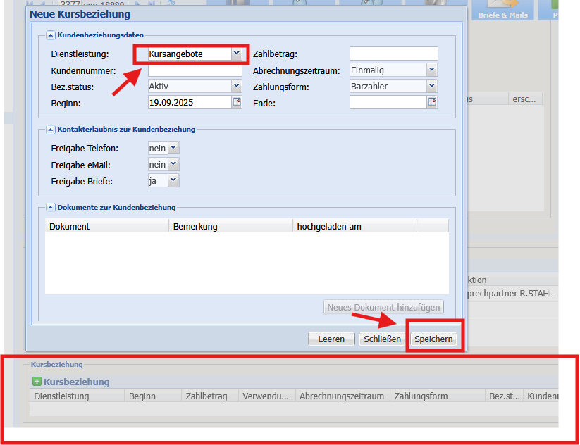 Ist eine Firma nicht zugeordnet bzw. nicht aufrufbar, liegt die Ursache vermutlich in der fehlenden Kursbeziehung im betreffenden Modul.