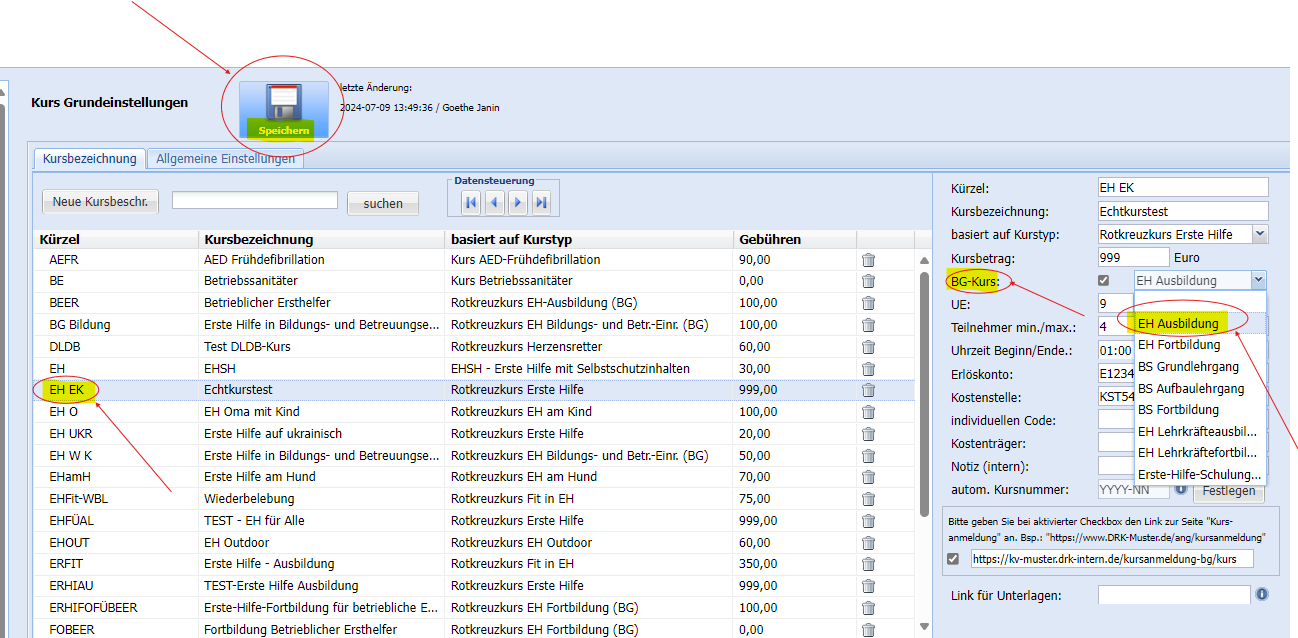 In den Kursgrundeinstellungen befinden sich unter "BG-Kurs" die Optionen, ob es sich um eine Aus- oder Fortbildung handelt.