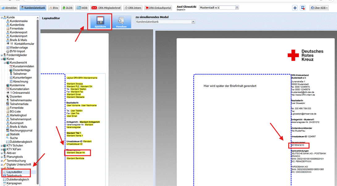 Die Steuernummer können Sie mit der Variable Mandant Steuer-Nr. im Layouteditor hinzufügen.