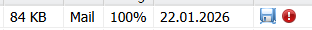 Versenden Sie einen Brief per Mail, so können Sie sich bei Bedarf diesen Brief im Nachgang über "Exportliste" herunterladen. Ist die Mailadresse nicht gültig, so erscheint hinter dem Diskettensymbol zum Download ein roter Kreis mit einem weißen Ausrufezeichen. Sie können darauf klicken und erhalten eine Auflistung der fehlerhaften Mailadressen.
