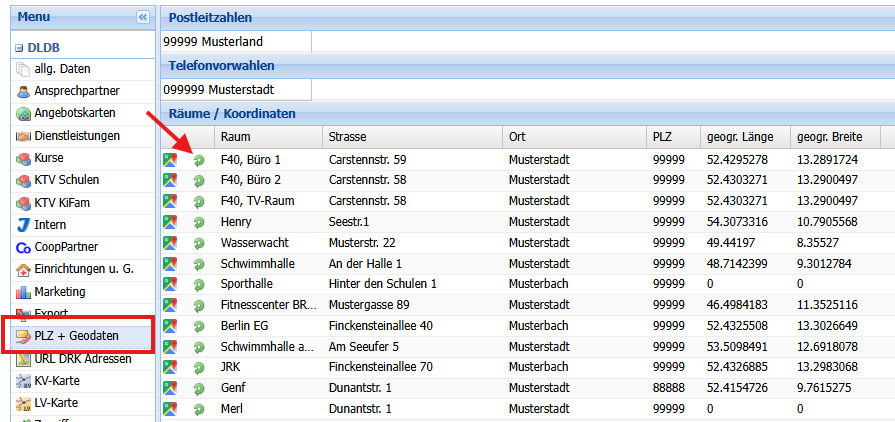 In der DLDB die Geo-Koordinaten des Raumes setzen bzw. aktualisieren.