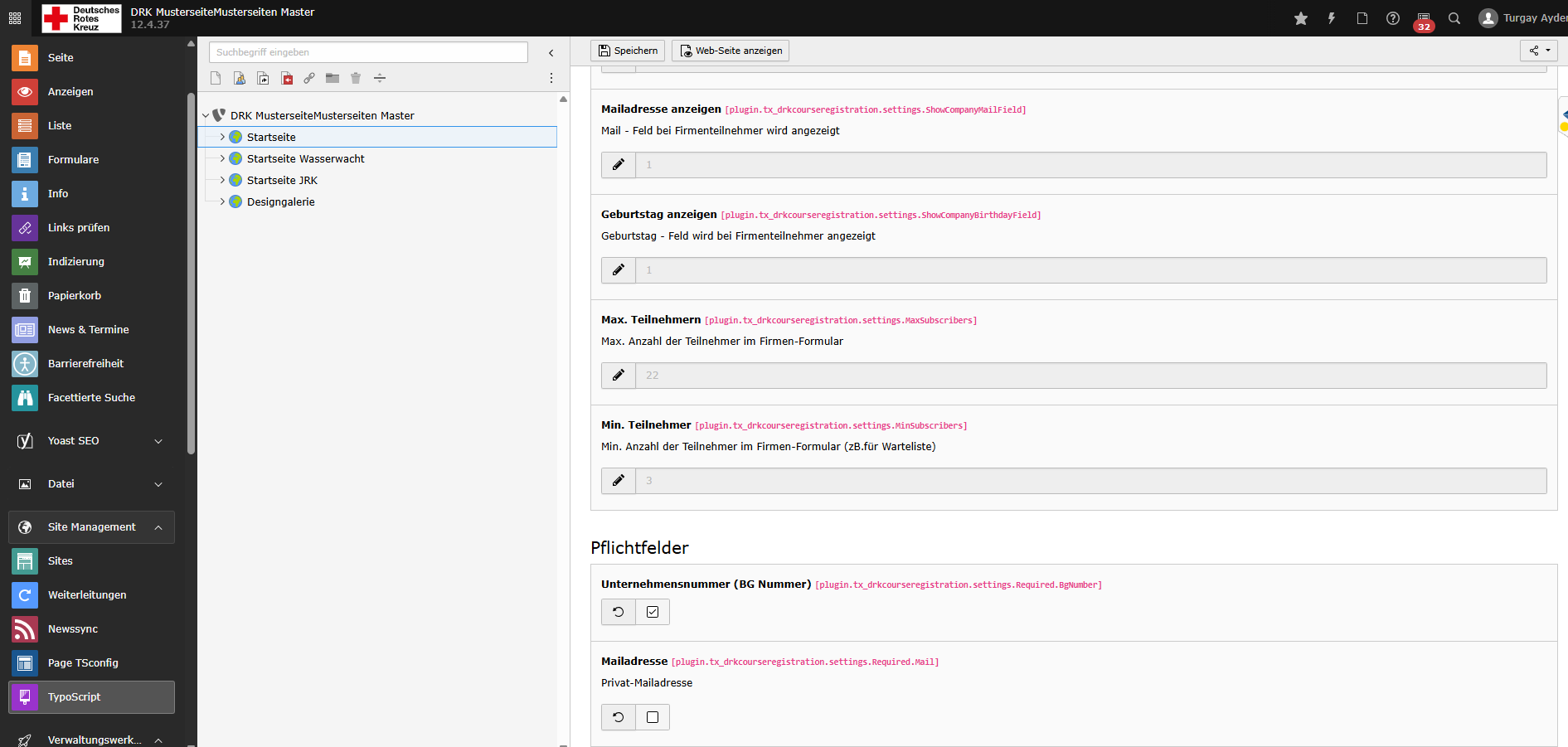 Die Option ist unter folgendem Pfad zu finden: TypoScript → Startseite (Weltkugel) → Konstanten-Editor → onlinekursanmeldung