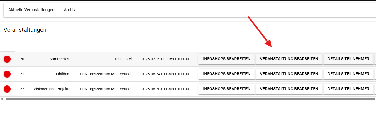 Sie können alle angelegten Veranstaltungen im Nachgang und jederzeit bearbeiten.